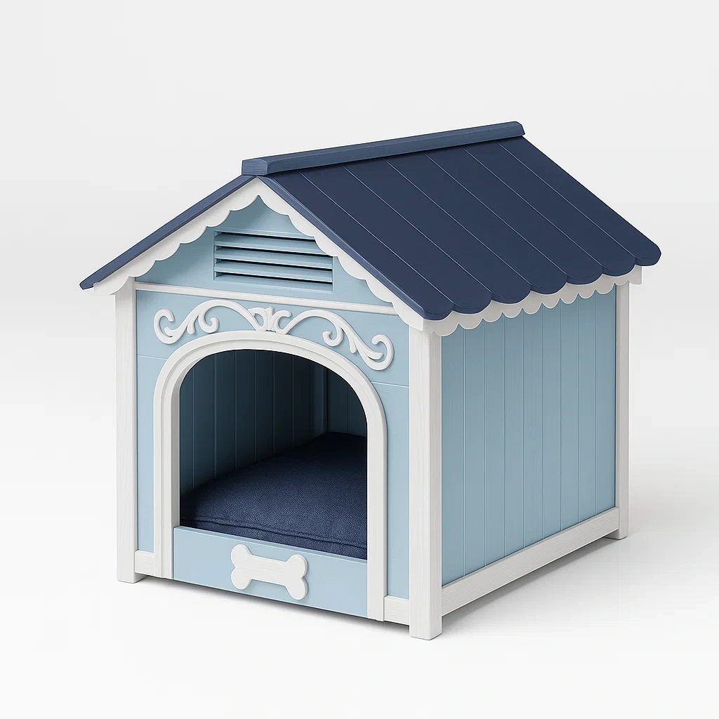 Niche pour chien en bois de pin taille moyenne 80x70x75 cm bleu/blanc