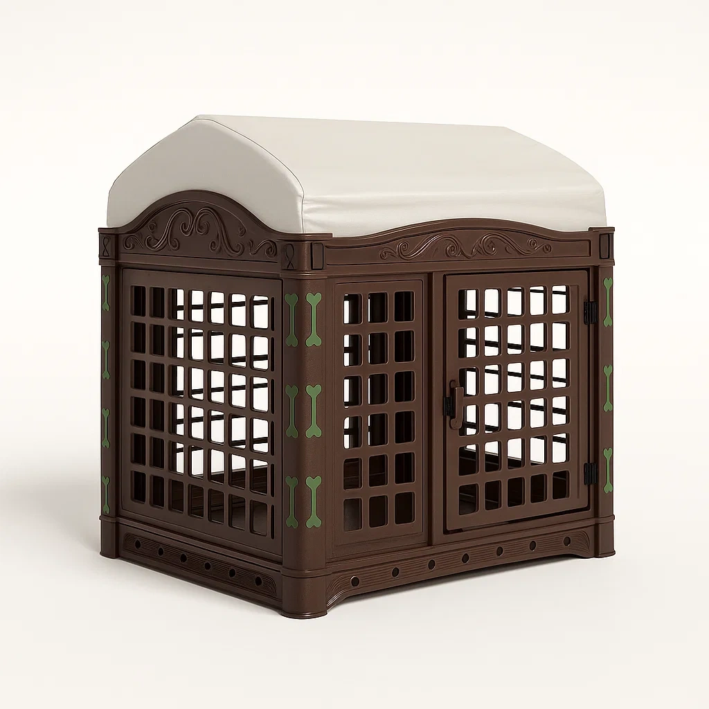 Niche pour chien en plastique imitation bois marron et vert