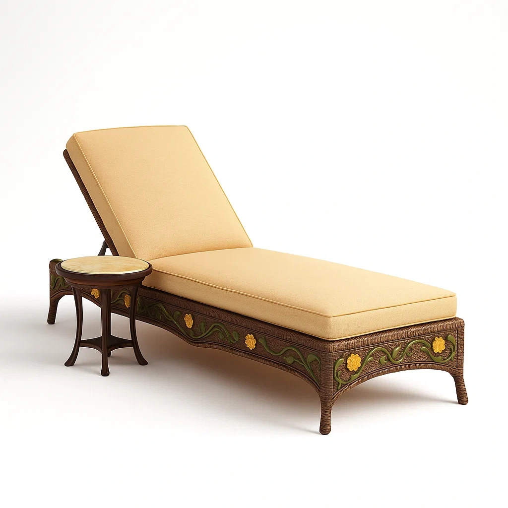 Cette ensemble comprend une chaise longue et une table d'appoint.