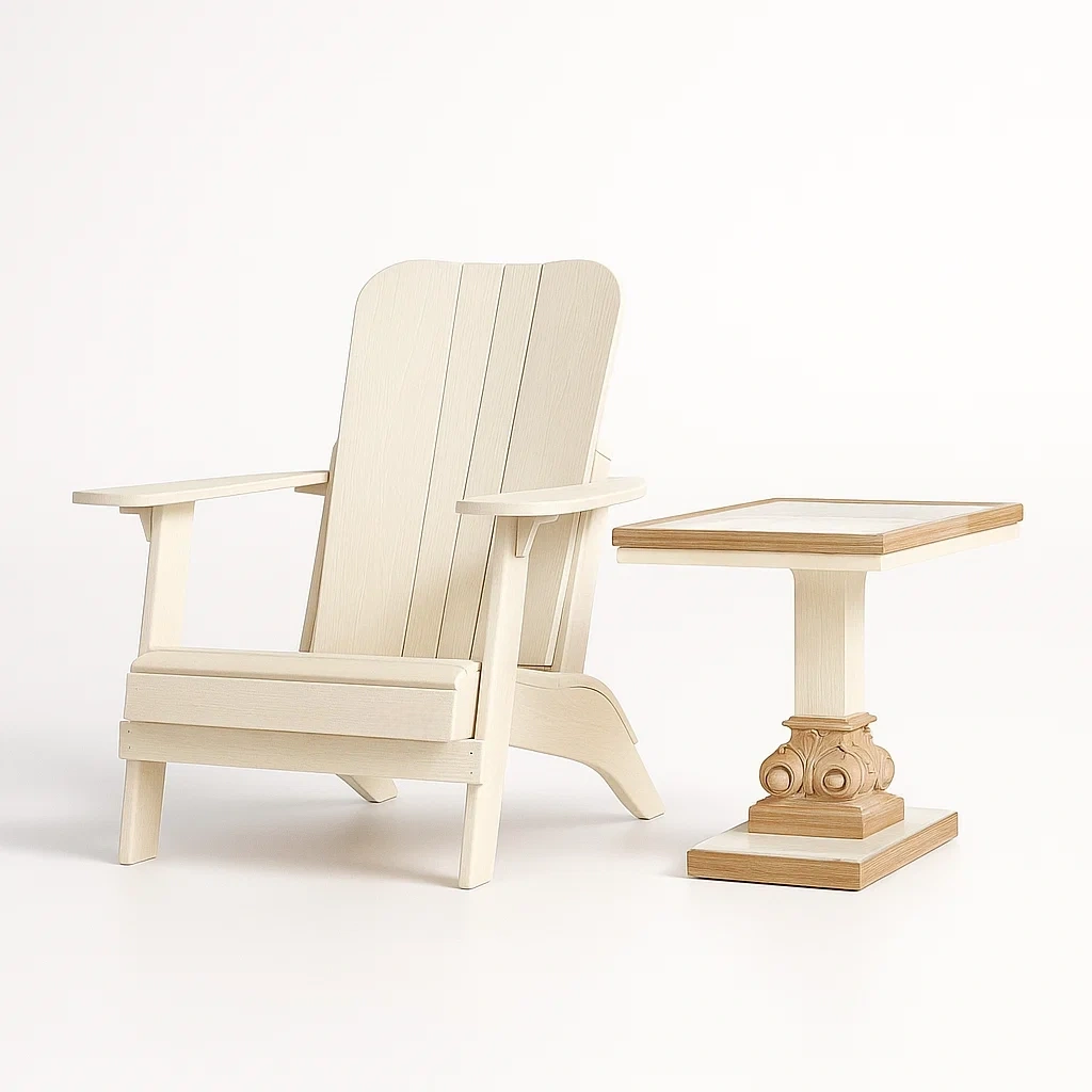 Contenu de l'emballage : 1 chaise Adirondack, 1 table d'appoint.