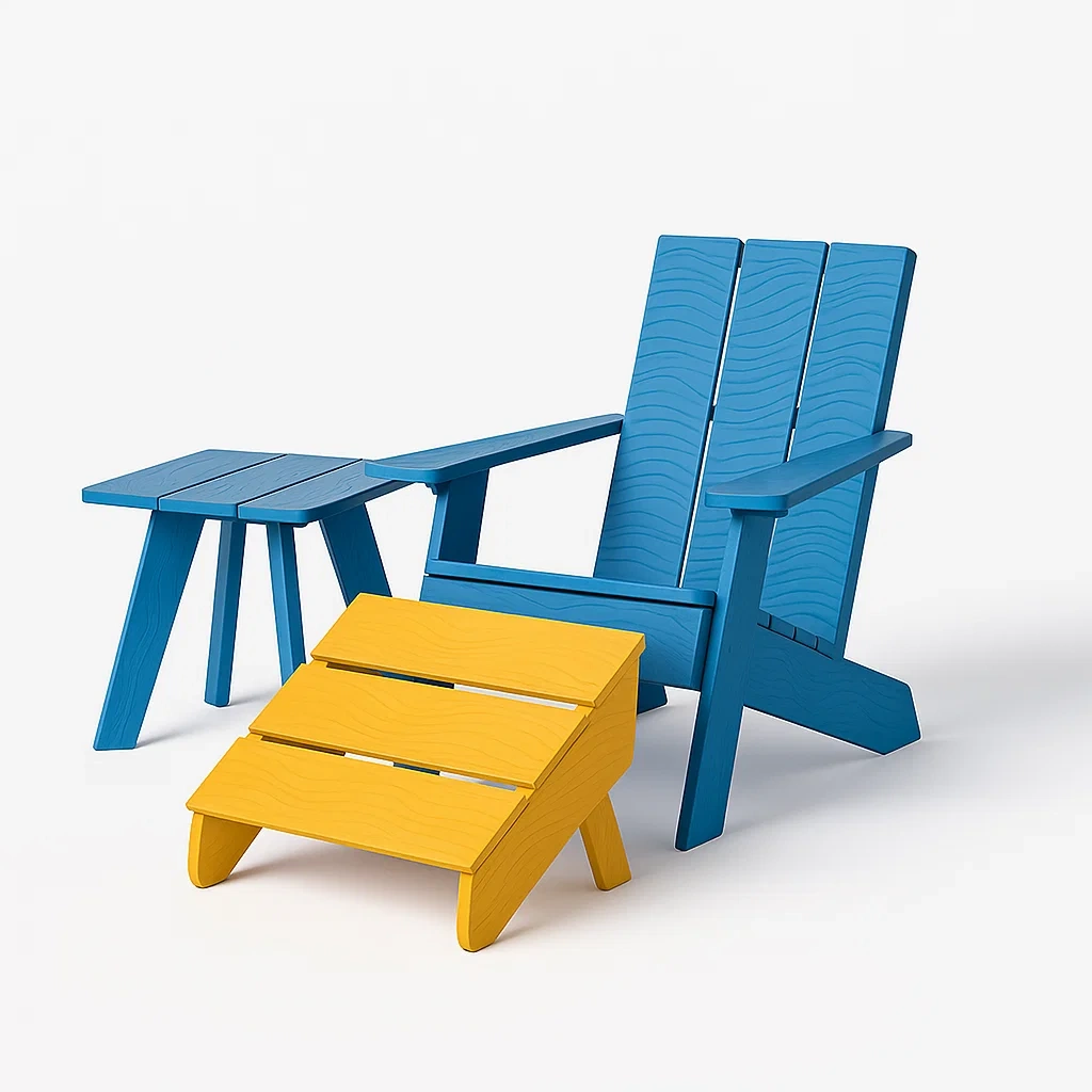 Produits inclus : 1 chaise Adirondack, 1 table basse, 1 repose-pieds
