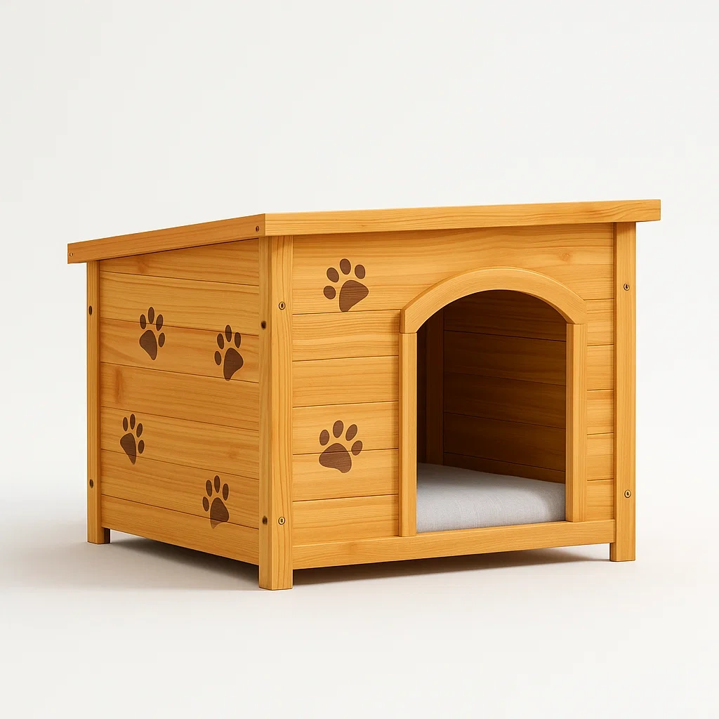 Niche pour chien en pin avec empreintes de pattes 70x50x50 cm